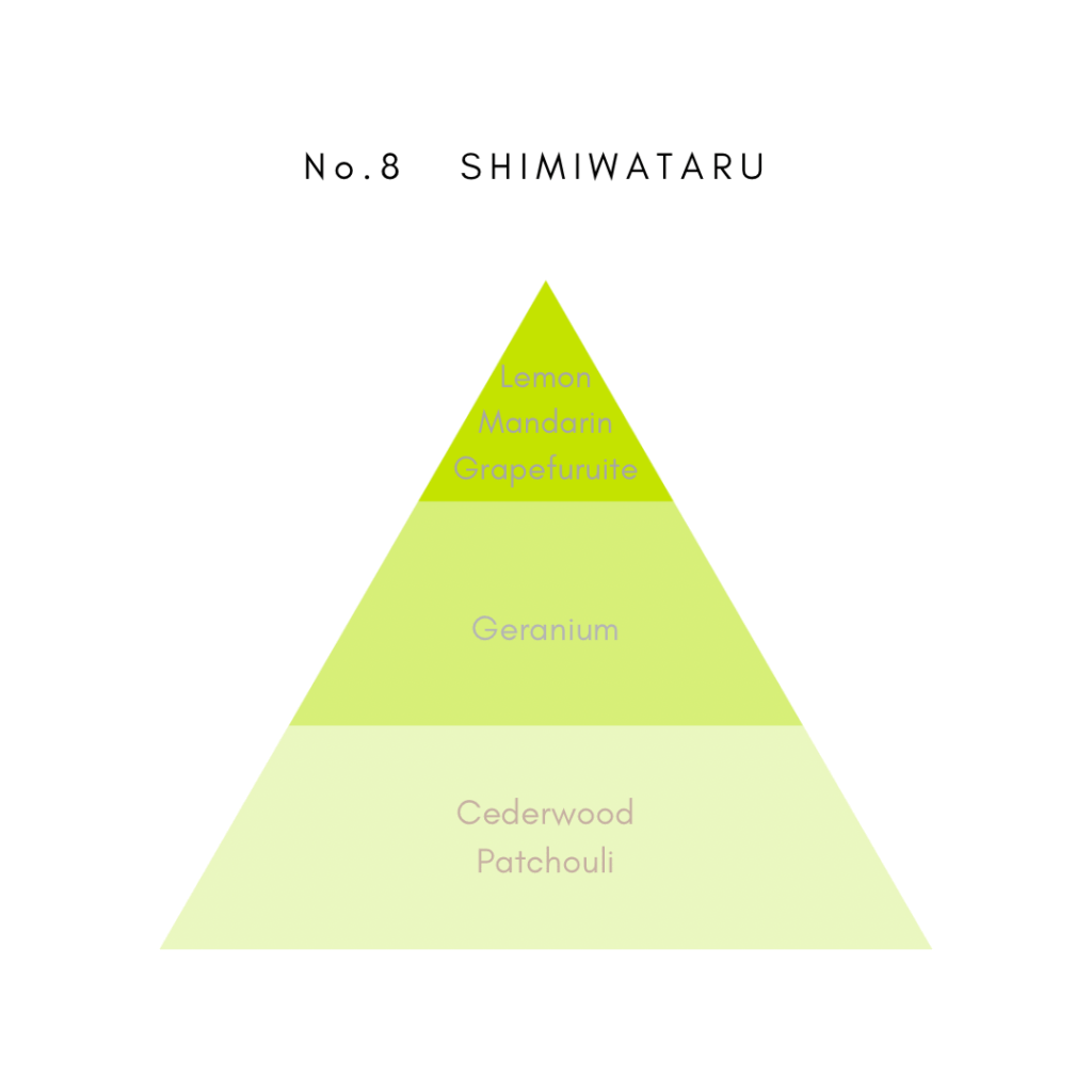 レモンのような爽やかな香りにハッカがアクセントを加え、スーッとした透明感のある香り。スッキリと気持ちを切り替えるとき、energy chargeしたいときにおすすめです。