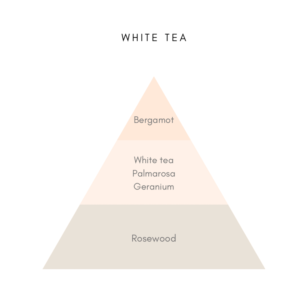ダマスクローズの芳醇な香りが深みを。大地の香りベチパーが陽気なフルーティシトラスを少しスモーキーに仕上げた。印象に残るスモーキーシトラスフローラルな香り - WHITE TEA